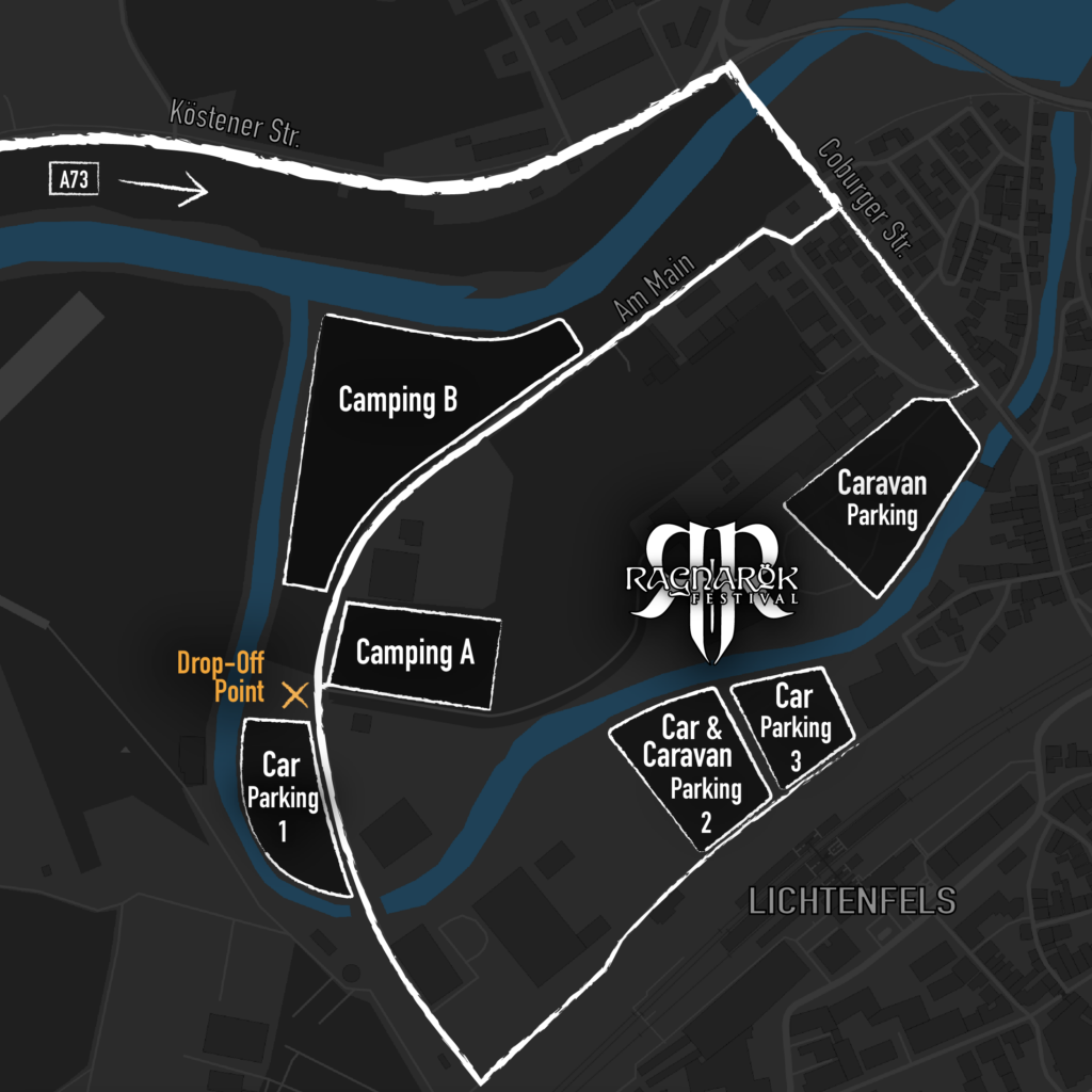 Das Ragnarök Festival findet seit 2006 in der oberfränkischen Stadt Lichtenfels statt, welche am Obermain zwischen Coburg und Bamberg gelegen ist. Lichtenfels ist eine Kreisstadt mit ca. 20.000 Einwohnern und bietet alle grundlegenden Einkaufsmöglichkeiten (Aldi, Edeka, Getränkemarkt, etc.) in nächster Nähe zum Festival.